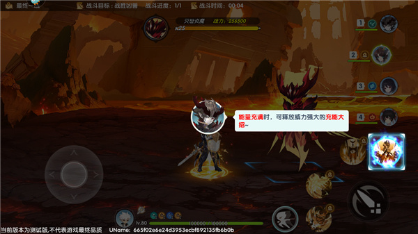 5、玩家通过左边控制角色方向,右边设有功能键。玩家可自行开启对战,当能量达到满值时,点击充能大招即可释放。