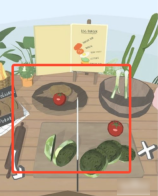 第二步:转动手机,借助AR视角,在菜篮子、冰箱等位置寻找食材。