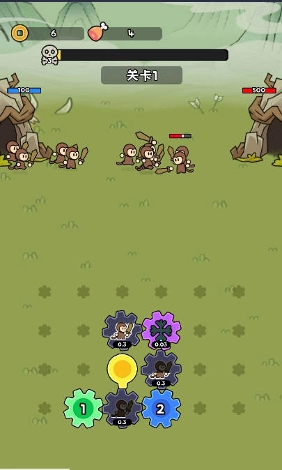 3、玩家需凭借策略与技巧方可顺利通关,战士会自动为玩家作战,玩家的核心任务是推动更多齿轮,以此生成更多战士。