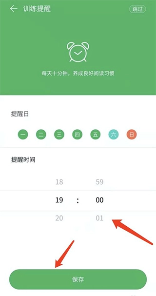 6、即可在手机倍速阅读app中实现设置训练提醒功能操作