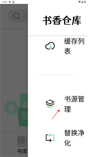 1. 打开手机,轻点「书香仓库」,接着点击右上角的三点图标,从中选择书源管理。
