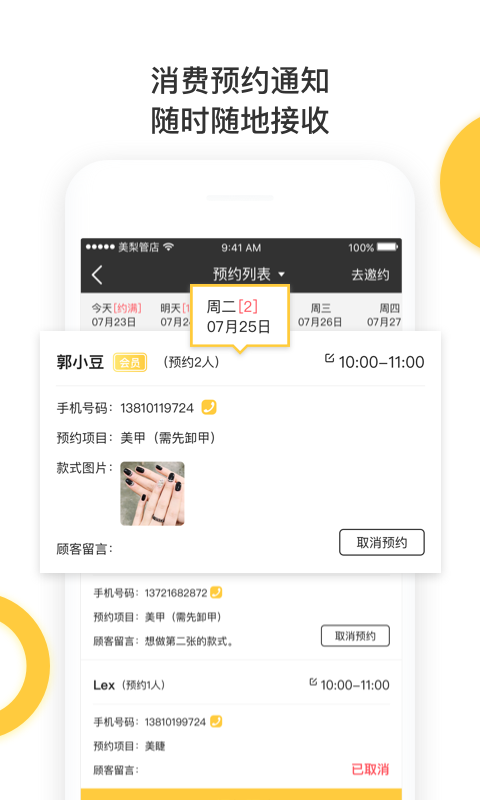 2. 此外,用户能够在线上查看每日预约顾客的人员信息,从而更妥善地安排工作。