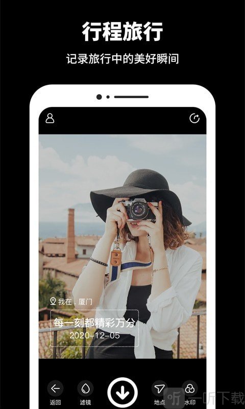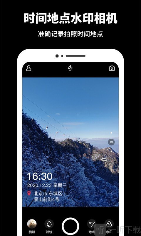 2. 打开后就能进行拍摄,并且不会在一秒内掉落。它能够与水印相机协同拍照,还具备时间和位置水印。