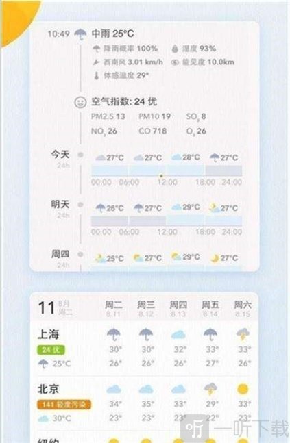 1. 空气质量指数:对空气指数界面进行了升级,实现5天内每小时的精准预报。