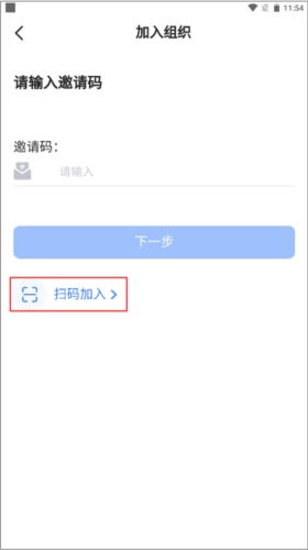 2、有两种加入组织的方式,一种是输入邀请码,一种是扫码加入,选择第二种。