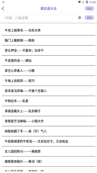3、还有各种歇后语大全,用户可以随时进行搜索查看。