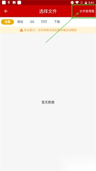 3、选择需要的文件格式之后对文件进行选择,点击文件管理按钮进行文件的选择