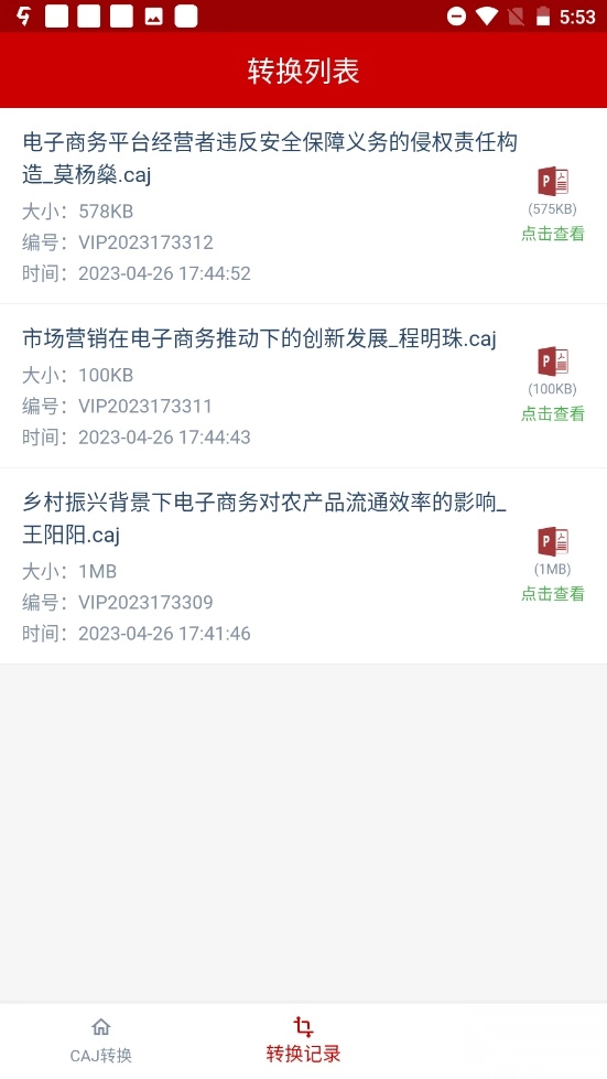 5、在“转换列表”可以查看自己的文件转换历史记录