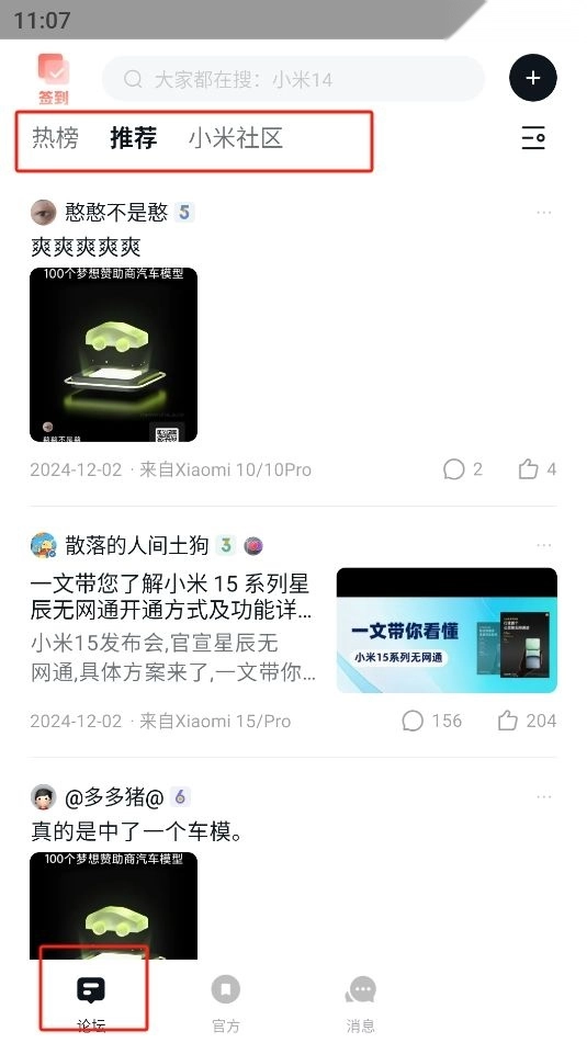 1、进入软件主页,提供各种小米热榜资讯,在社区与其他小米爱好者相互交流探讨