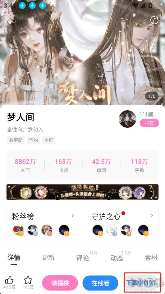 2.找到你想的作品点击进入;