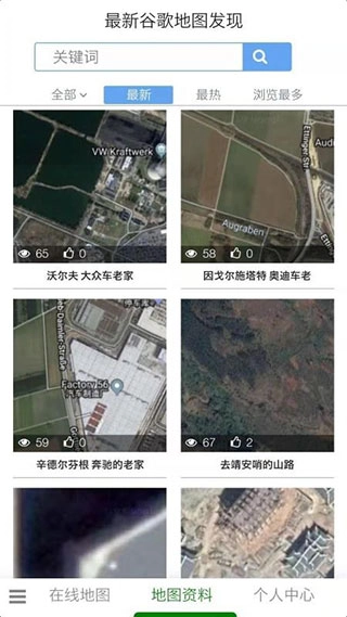 1、软件集成了谷歌卫星地图,百度卫星地图,腾讯卫星地图以及对应的电子地图和地形图,位置分享,实时收藏功能一应俱全。