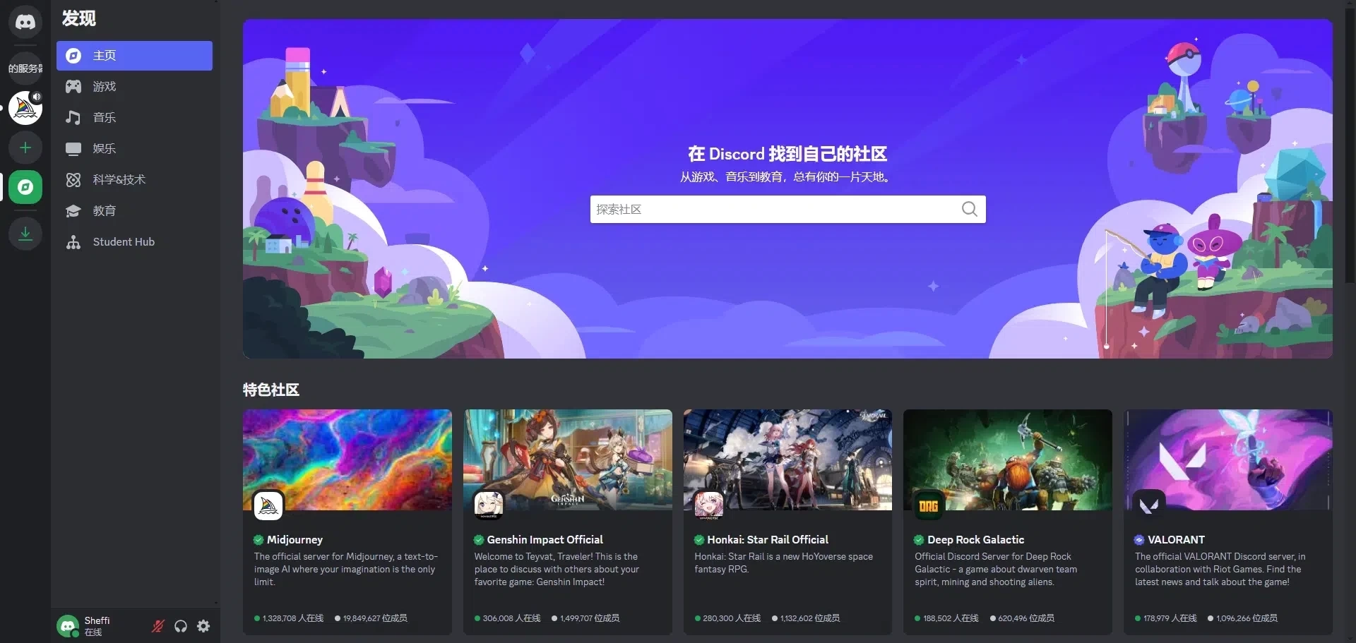 你可以在左侧点击自己的服务器,在这里邀请好友聊天;也能点击“添加服务器”,输入邀请链接加入他人的服务器;还可以通过点击“探索”找到感兴趣的社区并加入,以此开展信息获取、在线交流等活动,另外在自己的服务器里还能添加各类工具(比如Midjourney)来使用。