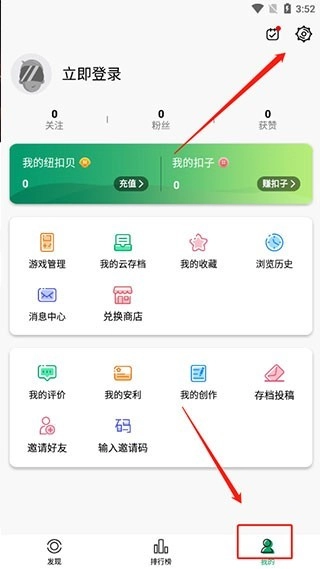 1、启动软件后,进入【我的】页面,点击页面右上角的齿轮形状图标。