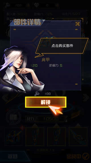 4、现在让我们为机甲购买部件,点击可以查看属性和购买。