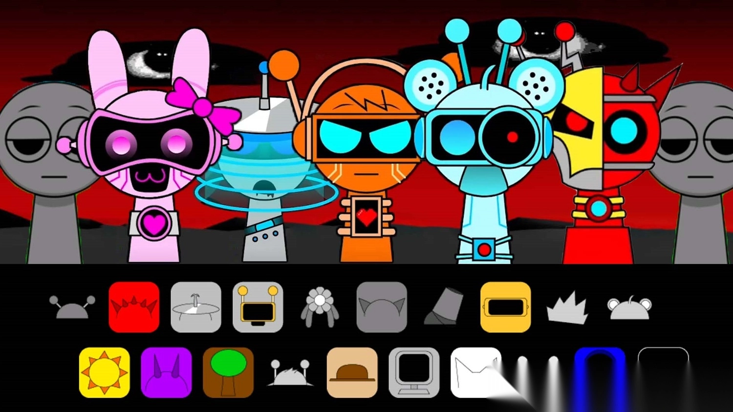 1、跟随音乐节奏,准确拖动对应的 Sprunki 角色按钮,为角色佩戴面具,完成节奏挑战。