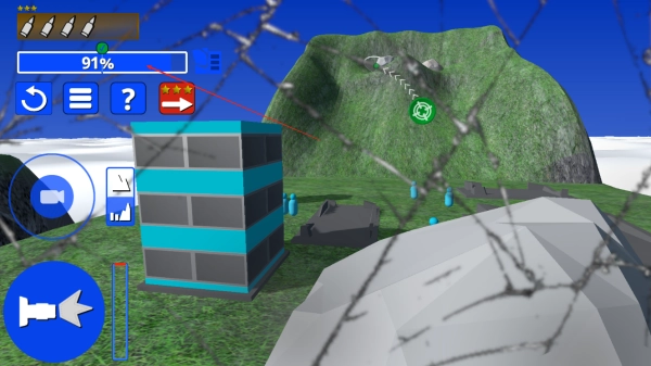 2、时刻注意左上角炮弹数量,通过调整发射角度和力度,让岩石精准滚向目标建筑,还有留意任务完成度。