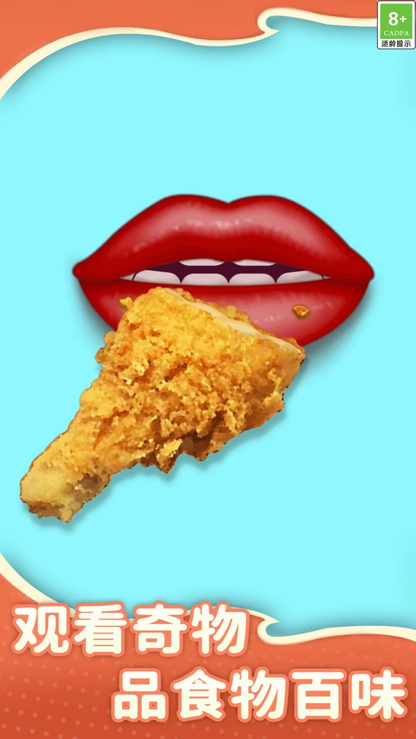 1.点击触发动作:玩家只需点击画面即可控制嘴唇进食,动作流畅自然,节奏掌控自由,想吃多久都没问题超解压。