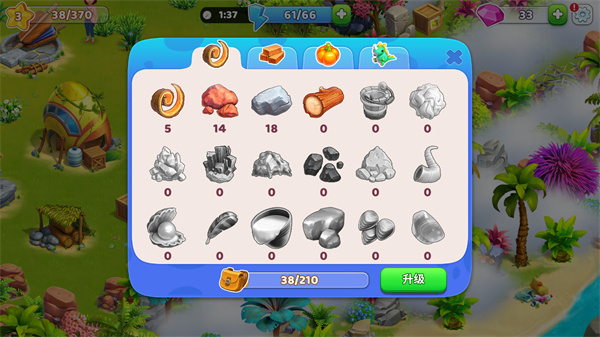 5、在背包中,你能够查看已收集的各类材料数量,并且还能对材料进行升级。