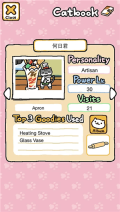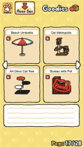 2、礼物清单,就像收集卡片一样,每一次收到猫咪礼物的演绎动画都是一次惊喜。猫咪后院这款游戏总是随着季节的变化更新内容,加一些新猫咪种类和新的道具。至今还有两只猫咪没有送我礼物,她们来的次数比较少,所以收到礼物的概率就低。