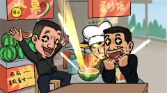 第二关,把右边的人放到蛋炒饭小车后面,长按2秒头部,就会带上厨师的帽子哟,然后把西瓜放到锅上,就可以了。
