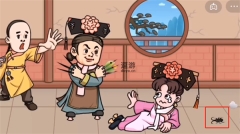 第四关,离开凳子,会发现天牛,接着将天牛放在窗户上,小燕子吃掉天牛后,场景就来到皇上这里,要帮皇上摆脱容嬷嬷的控制。