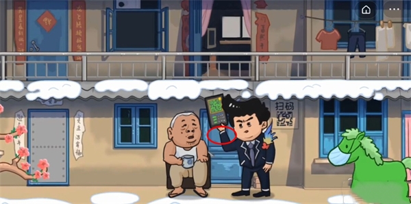 在第七关里,先点击大爷,接着点击西装男并出示绿码,随后把雪擦拭干净,这时马冬梅就出现了。