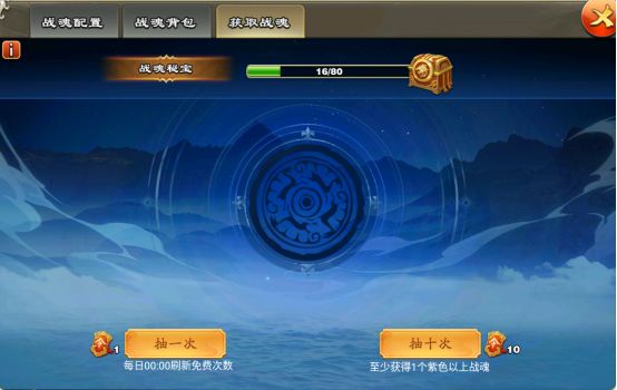 ①普通战魂抽奖界面:也就是平日大家点开的每天可以免费抽取一次战魂的界面,抽取80次就会赠送一个随机橙色战魂宝箱