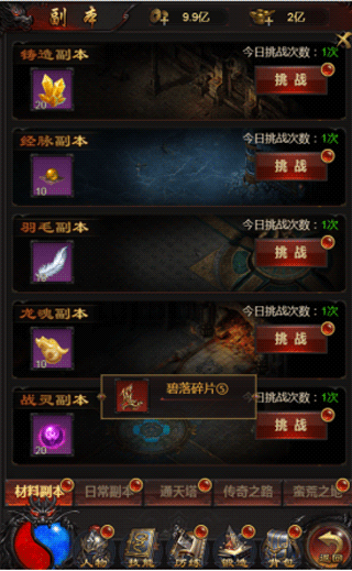 a. 副本包含4种:铸造副本、经脉副本、龙魂副本和羽毛副本