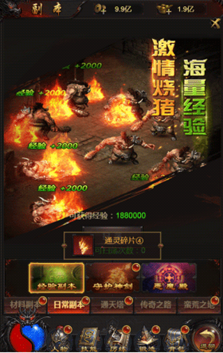 玩家每天可挑战一定次数的经验副本,到达一定怪物击杀量,即可获得相应的经验奖