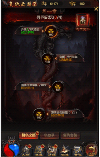 在复仇之路上,玩家只要完成指定任务,就能获取高级装备以及大量奖励。