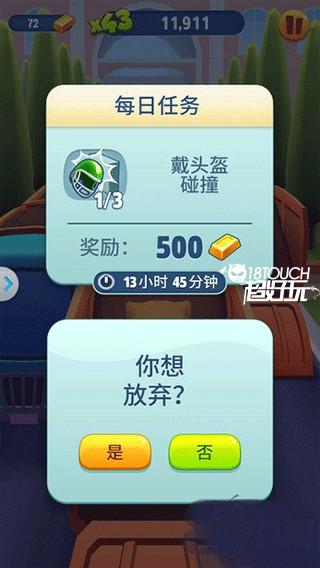 4、小编注意到,积累分数任务要求玩家必须在一次跑酷过程中达成,若获得规定分数前跑酷失败,玩家就必须重头再来。除非你对自己的手速有足够自信,否则切勿为了收集金条而在达成目标前进行高风险操作;