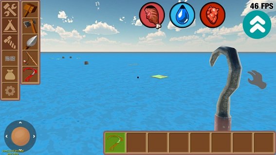 1. 游戏开始时,利用钩子来收集资源,要留意别遗漏木桶,要是钩子勾不到,就下水去打捞。先制作杯子与煮水器,随后再打造炉子和鱼竿。