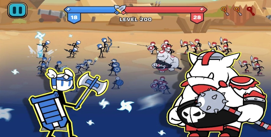 1. 充满趣味的争霸模式呈现出热血的火柴人对抗历程,玩家可挑选不同的游戏关卡与地图。