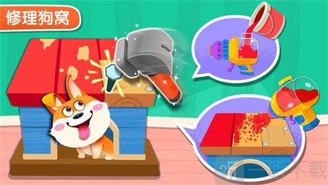 2. 在游戏里,宝宝摇身一变成为一名修理师,能够修理榨汁机等各类机器。