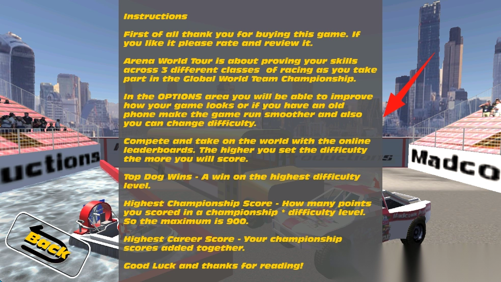 1、先阅读说明熟悉玩法,接着在选项区域调整难度与画面设置,然后参与锦标赛来提升分数。