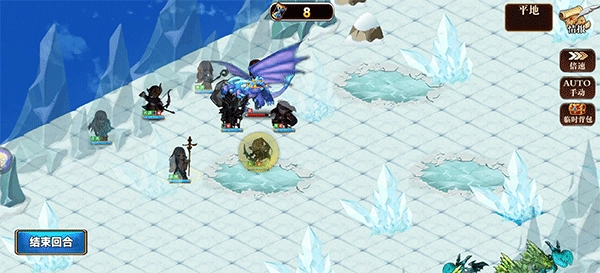 6、铁甲负责引导冰龙,土法和精灵配合晕眩冰龙,剩下的角色攻击小龙,站位安排如下。