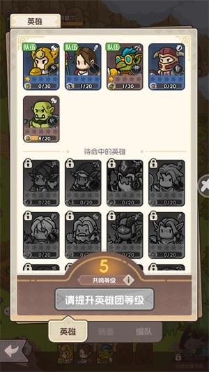 6、点击左下角的按钮能够提升英雄们的等级,等级越高,英雄的战斗力就越强。