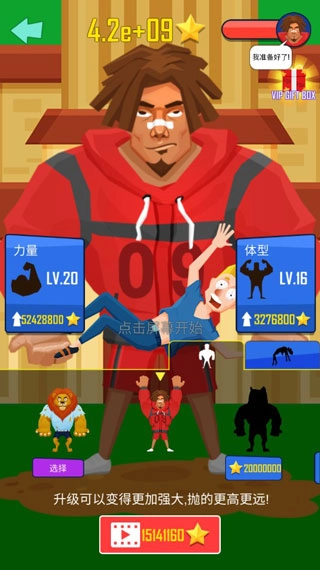 2、游戏玩法很简单,点击大力神手臂上的男人,就能把他抛向天空