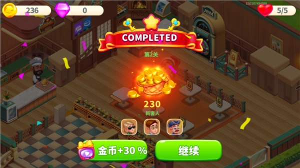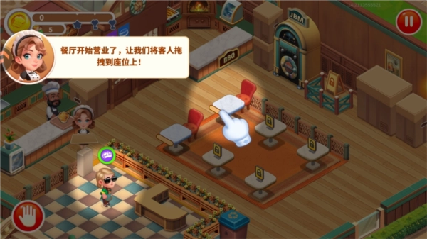 1、游戏设置为关卡模式,进入关卡后,需拖动前来的客人到座位上就座。