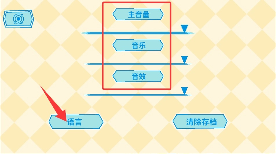 1、先点击右上角的齿轮图标进行细致调整,在这个设置界面里,你可以调节游戏的音量大小,也能切换成自己熟悉的语言版本。