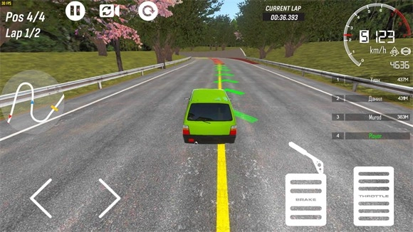 4、选定模式后游戏便会正式启动,启动后左侧负责操控车辆转向,右侧则对应前进与后退功能,玩家还能在设置界面中自主切换各类不同的控制模式。