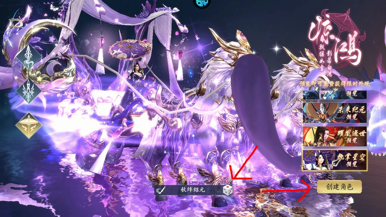 4、第三个惊鸿也是女角色,点击骰子可以随机改名,选好之后点击创建角色就能进入游戏了。