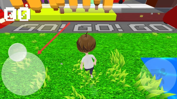 1、处于绿色草地场景时,需操控左侧的虚拟摇杆,引导角色向指定方向移动,以此开启游戏的挑战进程。