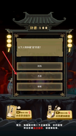 3、遇到人物相关的问题时,需结合游戏内的线索和人物设定进行分析判断,谨慎选择答案,答对可获得功德等奖励。