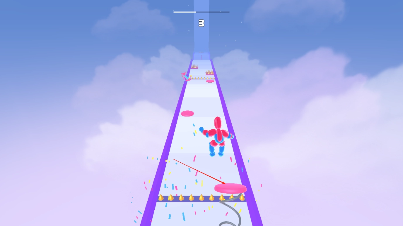 1、障碍物躲避技巧:时刻关注前方赛道的尖刺等障碍物,提前预判其位置和分布,通过左右移动气球人灵活避开,避免被刺破导致闯关失败,保持前进节奏。