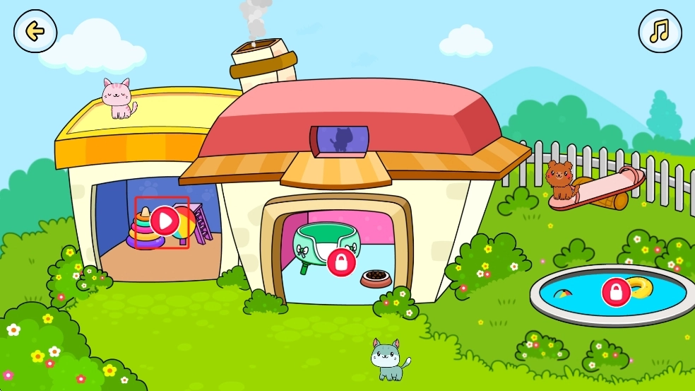 1、点击房屋左侧区域里的红色播放按钮,即可进入室内场景,解锁与宠物或玩具相关的互动玩法。