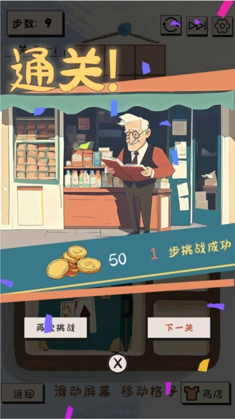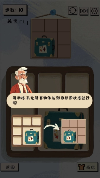 2、在有限的步数,将杂货铺内凌乱的布局恢复成目标图,并完成每个场景的拼图挑战。