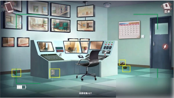 1、搜证物品:2幅油画、2个齿轮、显示屏、监控设备、日历、门、地板、带密码锁的墙壁、屏幕。