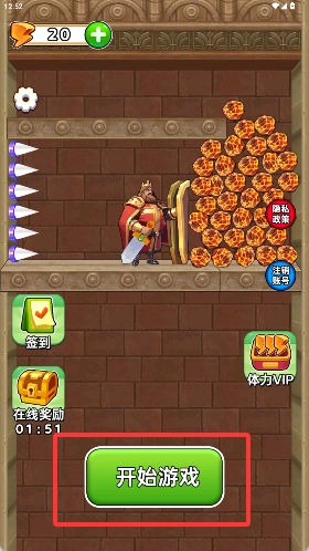 3、上方显示我们的体力,开始游戏需要体力。