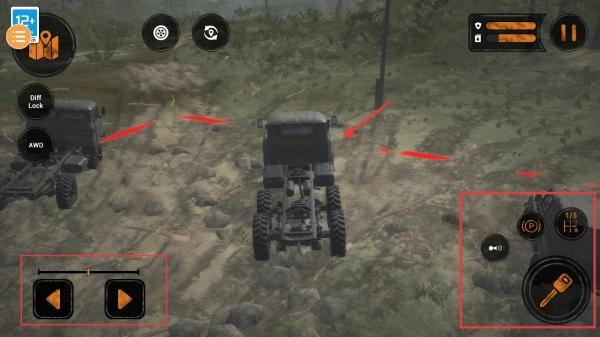 1、地形物理拟真:泥沼区域呈现轮胎下陷与泥浆迸溅的特效,车辆重量分布对侧倾角度的影响进一步强化了驾驶的真实感。